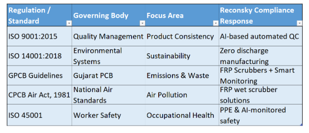 It designs and manufactures FRP-based systems — scrubbers, tanks, blowers, and lining solutions — that inherently meet compliance standards because of their material properties and smart integrations.